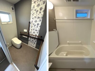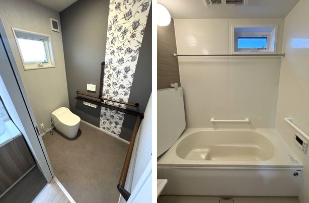 トイレやお風呂以外にも玄関や廊下などくまなく手すりを付けて、バリアフリーを意識しています。