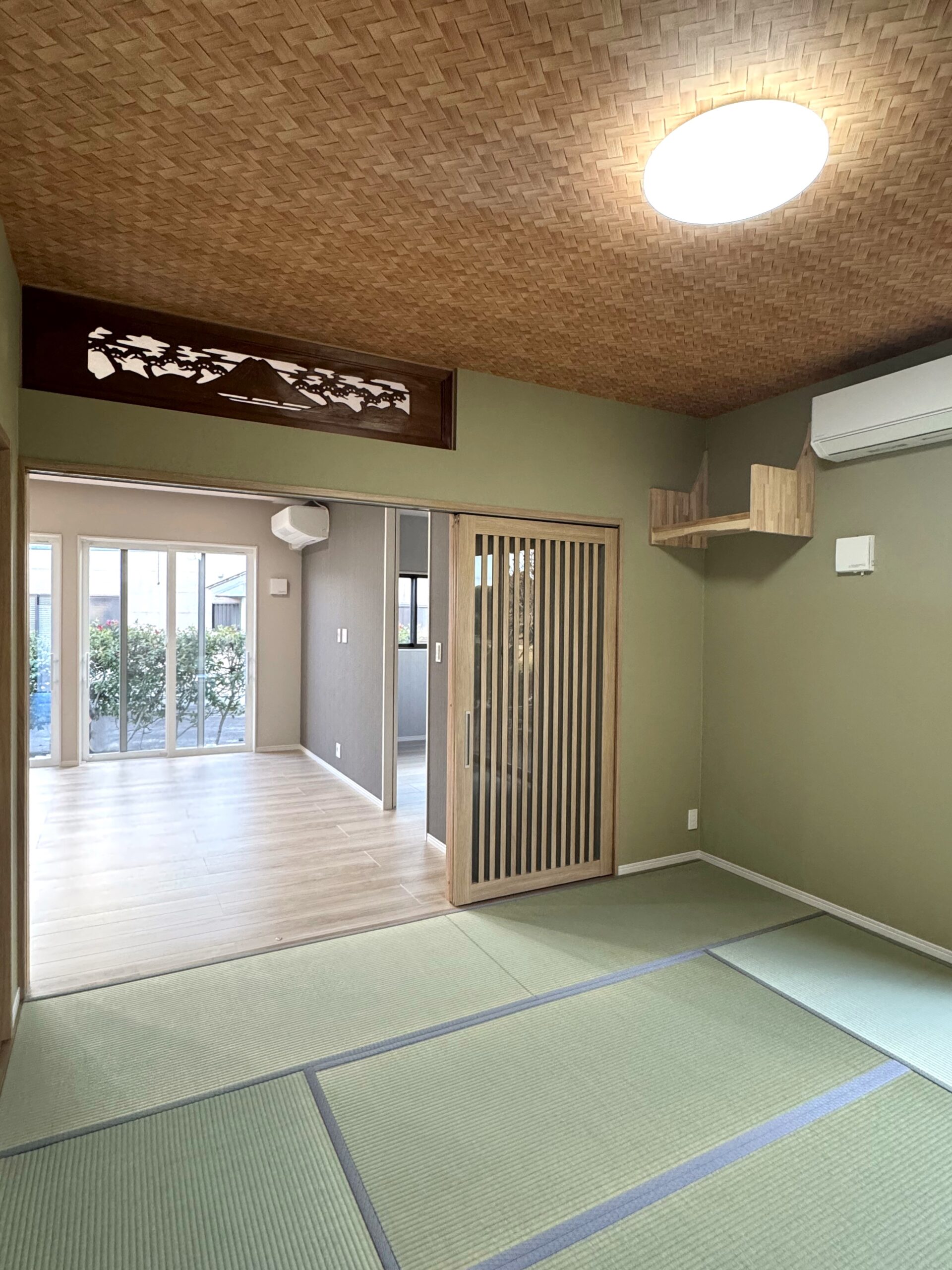 和室入口の扉の上にある欄間は建て替え前のお家にあったものです。