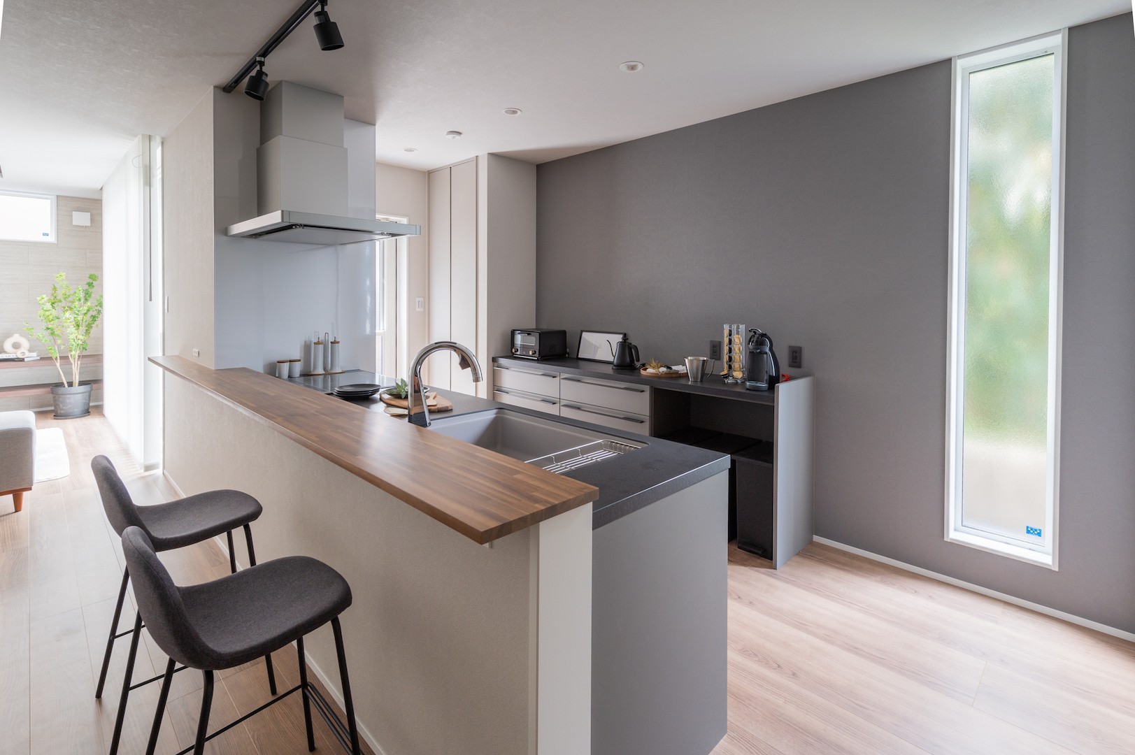 また、コンロの手前スペースも広くとっているので、より広く快適に二人で調理を進めることができちゃいます。