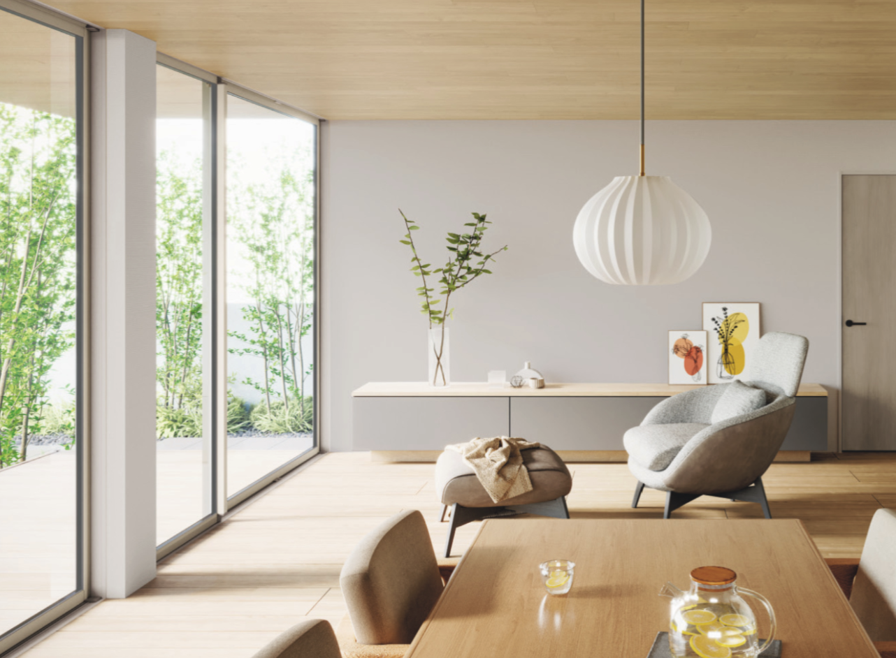 見た目のスリムさと美しさだけでなく、性能面も充実。エスティナはアルミと樹脂のハイブリッド構造を採用しており、優れた断熱性を発揮。夏は強い日射をカットし、冬は室内の暖気を逃がさない設計で、一年を通して快適な室温をキープします。遮熱Low-E複層ガラスと組み合わせることで、省エネ性能もさらに向上。気密性・防音性にも優れており、外の騒音を軽減。交通量の多いエリアでも、静かで穏やかな室内環境を実現します。