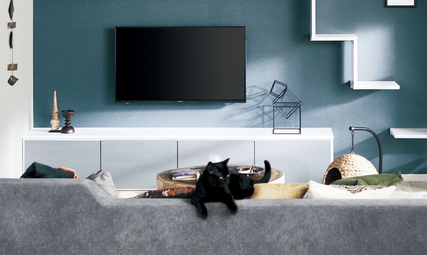 高い場所から部屋を見渡したり、窓の外を眺めたりするのが大好きなネコちゃん。 このお家では、Panasonicの「インテリアカウンター」という部材を使い、丈夫で美しいキャットウォークを造作しました。