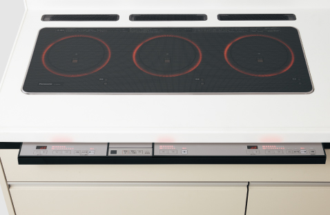 福岡テクノスのモデルハウスでは、パナソニックならではの「トリプルワイドIH」を採用しています。一般的な2口コンロや予備コンロを用いた3口コンロとは違い、3つのコンロが横一列に並んでいるのが特徴です。今回は、その使い勝手についてご紹介します。