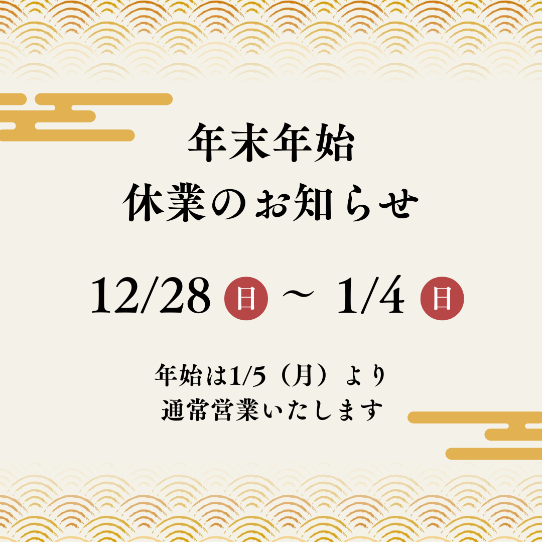 本年度の年末年始休業を、以下の日程で実施させていただきます。